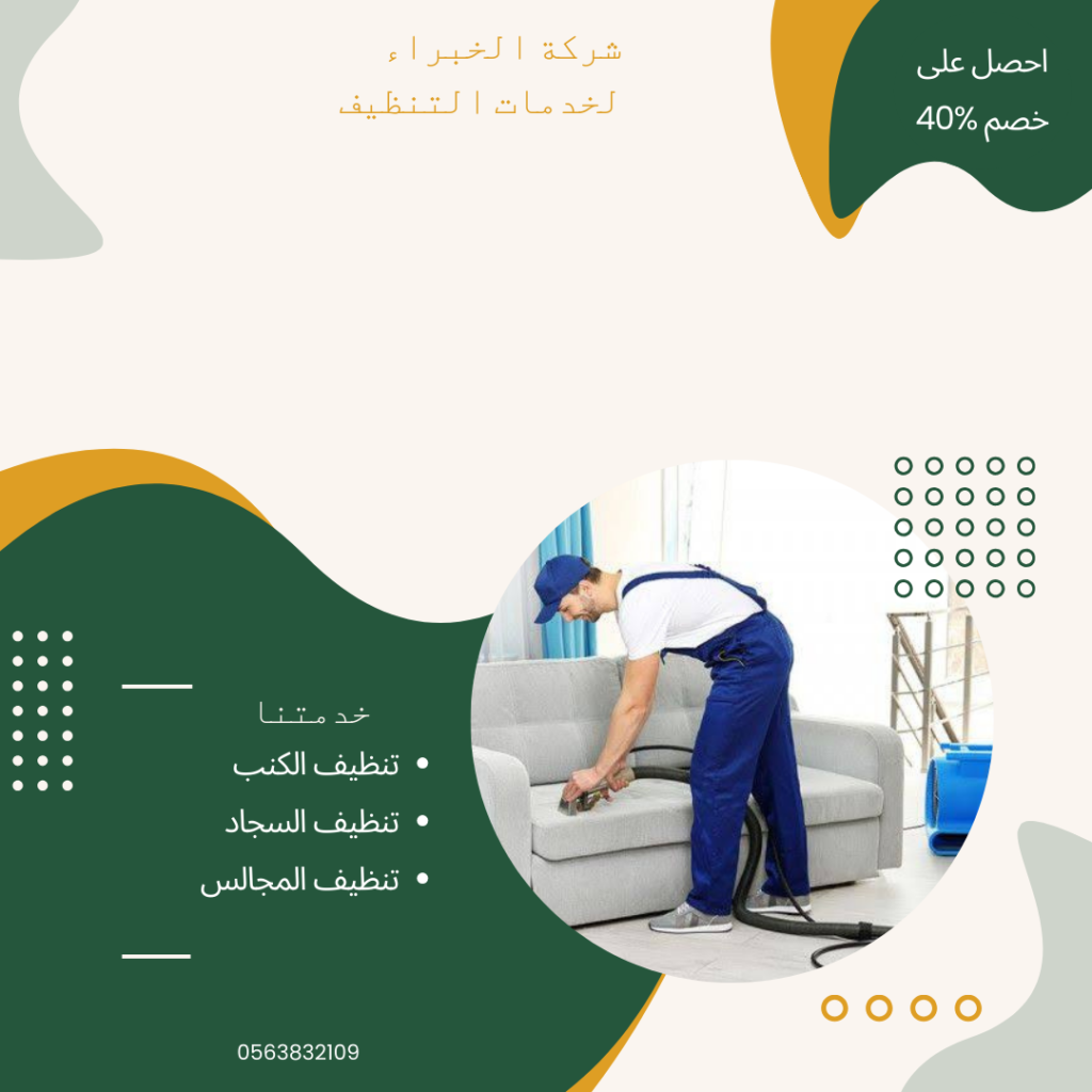 شركة الخبراء تقوم بتنظيف الكنب وتنظيف المجالس باستخدام احدث أجهزة التنظيف التي تقوم بإزالة اصعب البقع والاوساخ من الكنب دون الحاق اي ضرر بقماش الكنب فلا يحدث تغيير باللون او هلاك القماش فنحن شركة ذو خبرة طويلة وعلي علم بأحدث طرق تنظيف المفروشات